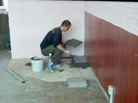 2. На подготовленную поверхность начинаем укладывать плитку.