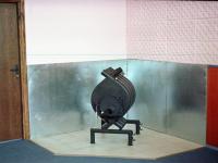 7. Теперь наш уголок готов и мы устанавливаем подставку, а на нее устанавливаем печь, и начинаем монтаж дымохода.
